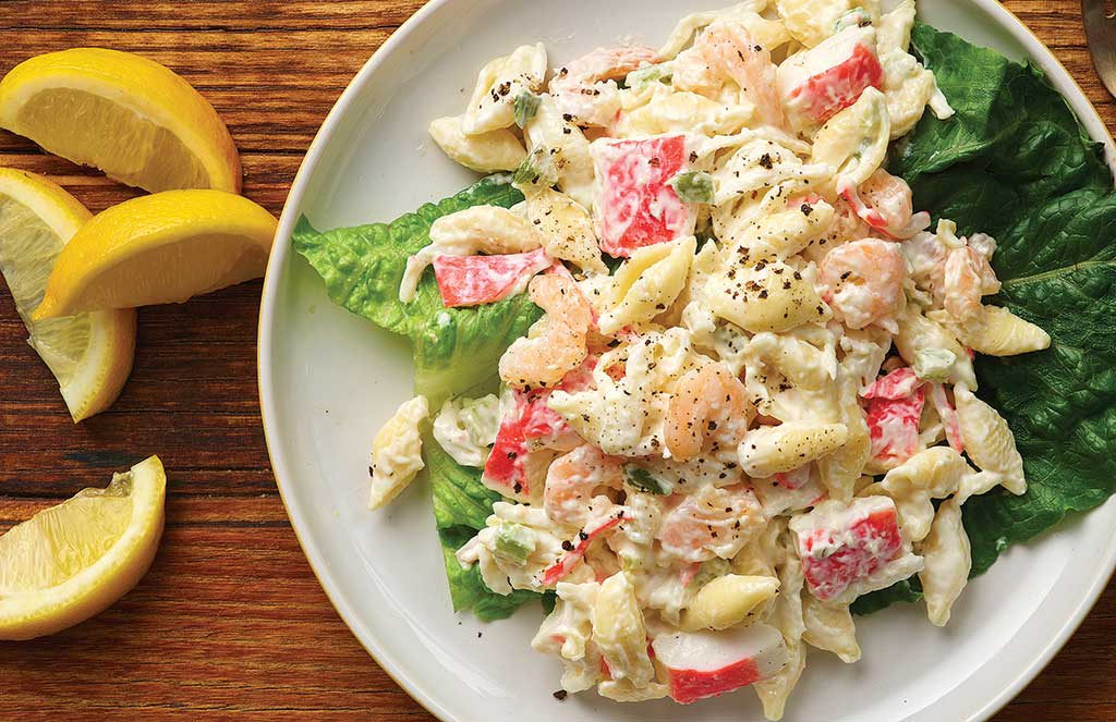 1 Lb. Don’s Seafood Pasta Salad – A luscious combination of imitation crabmeat, pasta shells, real mayonnaise, celery, shrimp and seasonings.