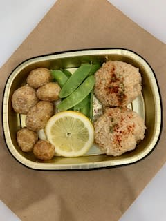 Take N Bake Crab Cake Dinner – 2 Crab Cakes, Potatoes, Seasonal vegetables, Lemon