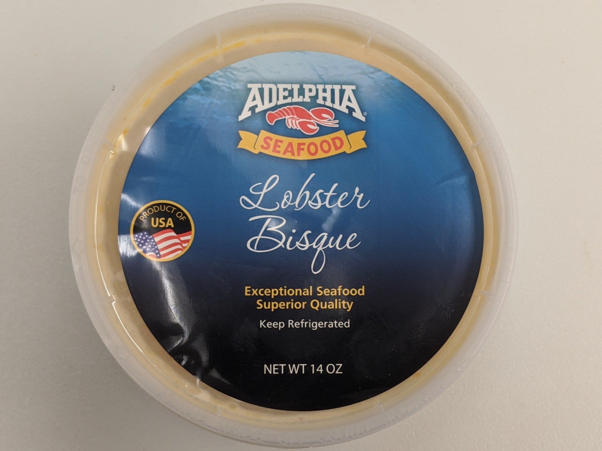 Frozen 14 oz container of lobster bisque.